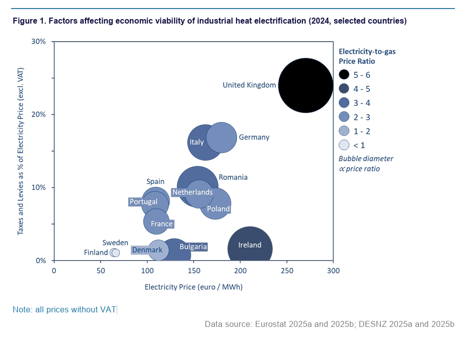 “Electrification of industrial heat is a key route to decarbonisation and modernisation, but, the high price of electricity compared to fossil gas remains a major barrier. Reducing taxes and levies on electricity can quickly and effectively improve incentives to electrify,” argue Oxenaar and Butler.