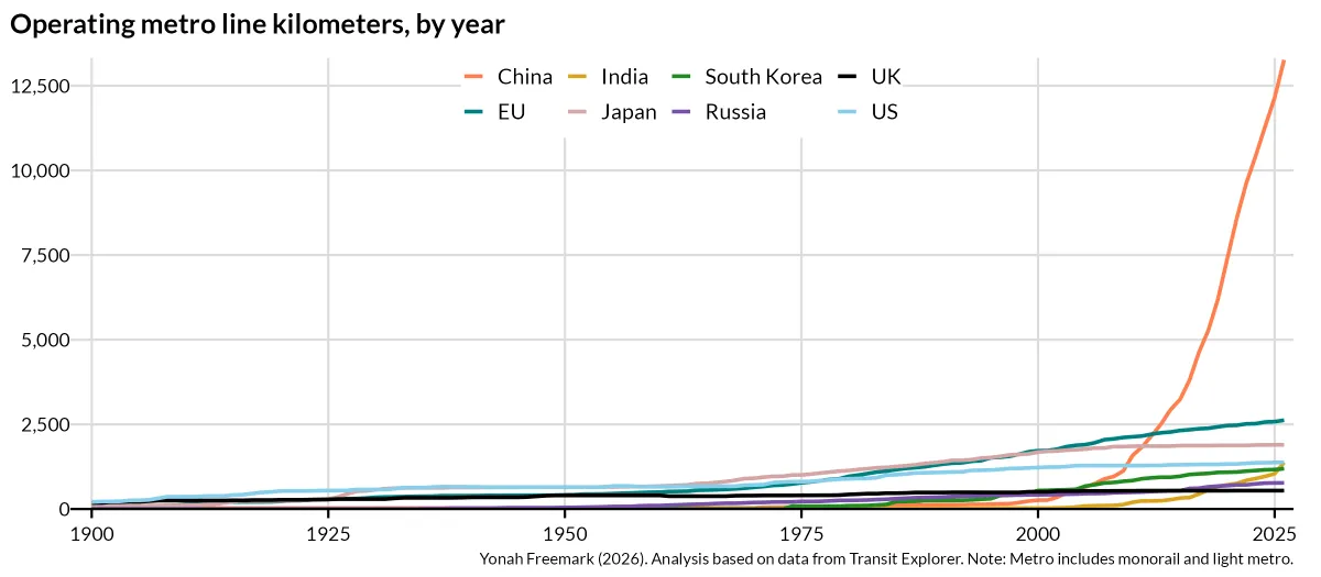 “Based on current plans, India will pass the United States in terms of the length of its metro systems by the end of 2026,” he adds.